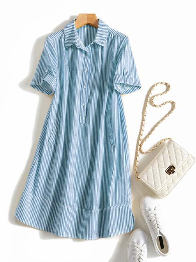 Fashion Casual Striped Shirt Dress