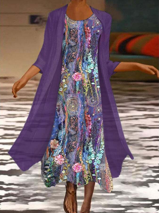 Floral Print Two Piece Dress